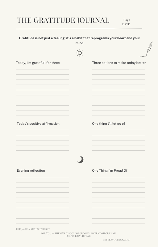Transform your mindset in 30 days. Get this 3-in-1 digital bundle: ebook, gratitude journal, and weekly tracker. Download instantly and start today..